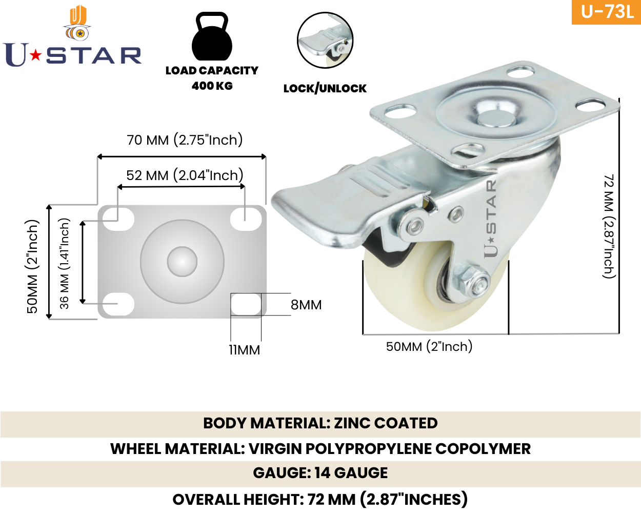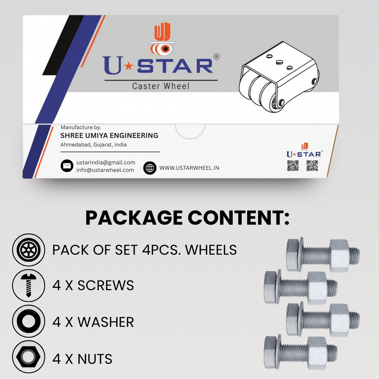 USTAR castor wheels are made from premium polyurethane and nylon materials, combined with ball bearings using in all joints which ensure their flexibility and durability.?